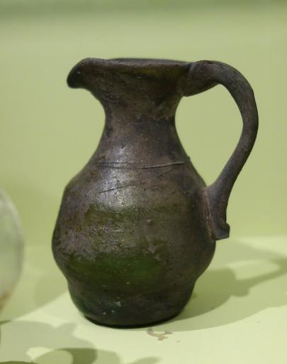 | View Original: | Vial, Eastern Mediterranean, 100 BC - 400 AD, free-blown glass, sheared rim, applied handle - Huntington Museum of Art - DSC04842.JPG (1764x2232) | |||