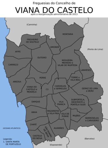 | Keywords: Viana do Castelo freguesias 2013.svg pt Freguesias do concelho de Viana do Castelo Fontes Diário da República Reorganização administrativa do território das freguesias Lei n º 11-A/2013 de 28 de janeiro Direcção-Geral do Território Carta Administrativa Oficial de Portugal CAOP versão 2013 Continente http //www dgterritorio pt/ficheiros/cadastro/caop/caop_download/caop_2013_0/caop2013cont_zip_2 en Civil parishes in the municipality of Viana do Castelo Portugal Sources Diário da República Administrative reorganization of the civil parishes' territory Law n 11-A/2013 from 28th January Direcção-Geral do Território Official Administrative Chart of Portugal CAOP version 2013 Mainland http //www dgterritorio pt/ficheiros/cadastro/caop/caop_download/caop_2013_0/caop2013cont_zip_2 2014-04-08 17 38 52 own Gazilion cc-zero Uploaded with UploadWizard Viana do Castelo SVG maps of freguesias in Portugal |