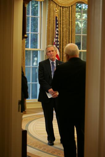 View Original:Vice_President_Cheney_Speaks_with_President_Bush_in_the_Oval_Office.jpg (-3504x2336)
