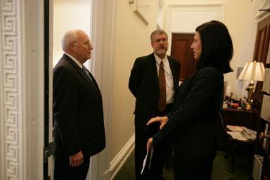 View Original:Vice_President_Cheney_Talks_with_Elyssa_Larranaga_and_David_Addington.jpg (4992x3328)