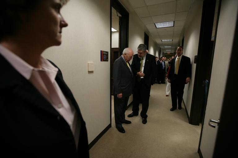 View Original:Vice_President_Cheney_Talks_with_David_Addington_in_Hallway_at_FBI_Headquarters.jpg (4992x3328)