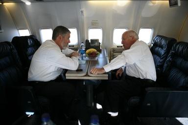 View Original:Vice_President_Cheney_Talks_with_David_Addington_Aboard_Air_Force_Two_En_Route_to_Creech_Air_Force_Base.jpg (4368x2912)