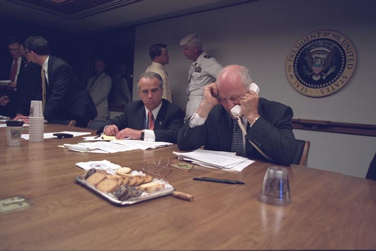 View Original:Vice_President_Cheney_with_Senior_Staff_in_the_President's_Emergency_Operations_Center_(PEOC).jpg (3072x2048)