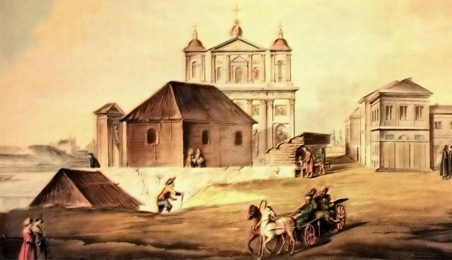 Keywords: Viciebsk, Zadźvińnie-Połackaja. Віцебск, Задзьвіньне-Полацкая (J. Pieška, 1800).jpg Віцебск Viciebsk Задзьвіньне Zadźvińnie вуліца Полацкая vulica Połackaja Ца ква Яўленьня Гасподняга Анд ей Щелкунов Віцебская энцыкляпэдыя http //evitebsk com/wiki/Файл Uzef-peshka-bogoyavlenskaya jpg Creator Józef Peszka century 19 PD-old-100 Paintings of Viciebsk by Józef Peszka Church of the Epiphany in Viciebsk |