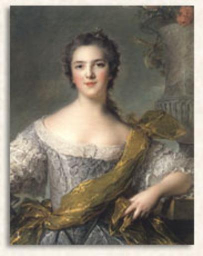 | Keywords: Victoire Louise Marie Thérèse of France, called Madame Victoire (1733-1799) painted in 1748 by Nattier.jpg Artwork Creator Jean-Marc Nattier Victoire Louise Marie Thérèse de France dite Madame Victoire 1733-1799 Oil on canvas cm 81 64 Versailles Grand cabinet du Dauphin du Château de Versailles http //www madamedepompadour com/_eng_pomp/galleria/entour/entour1 htm 1748 PD-old-100 Victoire of France Nattier 1748 | ||||