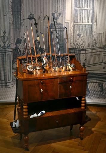 Keywords: Vienna Kaiserliches Hofmobiliendepot Mayerling 24042013 32.jpg en Imperial Furniture Collection Kaiserliches Hofmobiliendepot in Vienna A viennese coffee house stand for 20 pipes 2013-04-24 11 47 02 own Vassil cc-zero Imperial Furniture Collection-interior Uploaded with UploadWizard Pipes smoking |