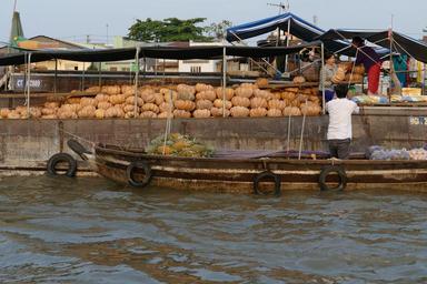 Keywords: vietnam mekong river mekong delta boat trip river market floating market boot ship transport trade pumpkin vegetables food can tho