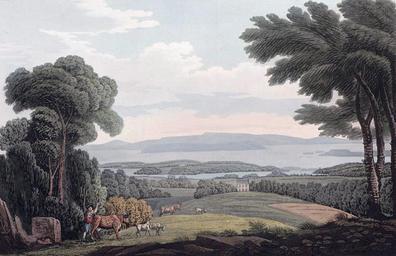 Keywords: View from Holman (JW Edy plate 48).jpg Artwork Creator John William Edy en View from Holman No XLVIII VIEW FROM HOLMAN The spot where this view was taken is called Holman situated on the road from Oslo Christiania to Bogstad in a vast valley flanked by a noble amphitheatre of woody mountains one of which has on its summit a spacious lake In the picture looking over some cultivated land is seen the farm-house which gives name to the place From it the vale gradually descends to the margin of Oslofjord Christiania Fiord Here a small island or isthmus presents itself on which the summer residences of the Governor and Commandant are seen The houses are ample and convenient particularly that of the former who has also employed much skill and labour in laying out the gardens and in planting all that would grow on so sterile a soil its base being the schistus niger or black slate which is seen on the walks At the end of one avenue is an obelisk inscribed to the memory of a departed friend a species of decoration which is very general in the gardens of the nobility and gentry of Norway and Denmark the view includes a vast extent of the Fiord stretching on the right side nearly to the town of Drøbak Drobak a course which the ships take on their voyage to and from Christiania situated on this shore to the left above the Crown Islands The hills on the left in the extreme distance are at the bottom of a beautiful and extensive bay near Ås Aas which is navigable for ships and where some cargoes are collected The hills on each side are covered with trees to the water's edge; this is also the case on the middle land but its interior is more occupied by farms and cultivated grounds The hills and rocks are of no great altitude on the shores of the Fiord except near Christiania and Drobak The scenery about Holman in feature and colouring much resembles that of of this beautiful region it may be added that General Peder Anker selected it as the site of a splendid mansion which his refined taste and excellent judgment have made the seat of the muses The house with its portico has the air of a Roman villa within the spacious rooms are seen many fine Italian pictures and prints ; among the latter I observed a choice set of Hogarth's works Books philosophical and musical instruments with other aids to science complete the range of intellectual resources in this elegant retreat The gardens are tastefully laid out in the English style; the shrubberies are planted with specimens of every species of tree and shrub indigenous to Norway Near the lake is erected an exact model of an ancient Norwegian dwelling on the sides of its large room are inscribed several hundred names each with its date and address of former visitors to Bogstad ; among them are the names of kings princes dukes lords ladies and of many scientific and eminent persons of both sexes written in pencil with their own hands On adding my own I perceived that of Mary Wollstonecraft Mary Wolstencraft not very distant This mansion is situated in the bosom of the amphitheatre of hills at the head of the valley mentioned above and is distant 12 English miles from Christiania The lofty mountainous scenery around being covered with the evergreen firs presents the most romantic and beautiful views imaginable Collapse bottom http //urn nb no/URN NBN no-nb_digibok_2011072910001 Boydell's picturesque scenery of Norway London 1820 Plate no 48 p 265 in scanned copy PD-Art-100 John William Edy Boydell's picturesque scenery of Norway Holmen Oslo Historical images of Oslofjorden |