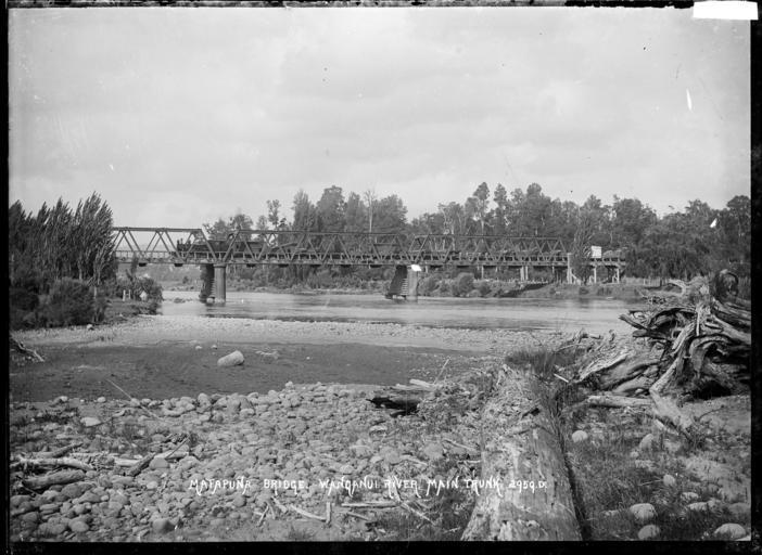 Keywords: blackandwhite monochrome photo border outdoor serene landscape field black and white View of the Matapuna Railway Bridge across the Whanganui River near Taumarunui, in the Northe Island Main Trunk Line. Photograph taken by William Archer Price. Inscriptions: Inscribed - Photographer's title on negative -bottom centre: Matapuna Bridge. Wanganui River. Main Trunk. [No.] 2959.D. Quantity: 1 b&w original negative(s). Physical Description: Dry plate glass negative View of the Matapuna Bridge on the North Island Main Trunk Line, across the Whanganui River near Taumarunui. Price, William Archer, 1866-1948 :Collection of post card negatives. Ref: 1/2-000703-G. Alexander Turnbull Library, Wellington, New Zealand. natlib.govt.nz/records/22804528 View of the Matapuna Railway Bridge across the Whanganui River near Taumarunui, in the Northe Island Main Trunk Line. Photograph taken by William Archer Price. Inscriptions: Inscribed - Photographer's title on negative -bottom centre: Matapuna Bridge. Wanganui River. Main Trunk. [No.] 2959.D. Quantity: 1 b&w original negative(s). Physical Description: Dry plate glass negative View of the Matapuna Bridge on the North Island Main Trunk Line, across the Whanganui River near Taumarunui. Price, William Archer, 1866-1948 :Collection of post card negatives. Ref: 1/2-000703-G. Alexander Turnbull Library, Wellington, New Zealand. natlib.govt.nz/records/22804528 |