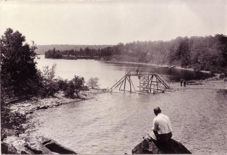 Keywords: merrill denison merrilldenison bon echo bonecho bridge narrows mazinaw 1920 bon echo inn bonechoinn mazinaw rock mazinawrock outdoor This photo is part of the Bon Echo archives. It features a man atop Mazinaw Rock (likely Merrill Denison) looking down at the Narrows Bridge. The bridge enabled visitors of the Bon Echo Inn to reach the staircase (steel) that led to the top of Mazinaw Rock. The lagoon can be seen at the top right and a dock which has remains that can be seen today. This photo is part of the Bon Echo archives. It features a man atop Mazinaw Rock (likely Merrill Denison) looking down at the Narrows Bridge. The bridge enabled visitors of the Bon Echo Inn to reach the staircase (steel) that led to the top of Mazinaw Rock. The lagoon can be seen at the top right and a dock which has remains that can be seen today. |