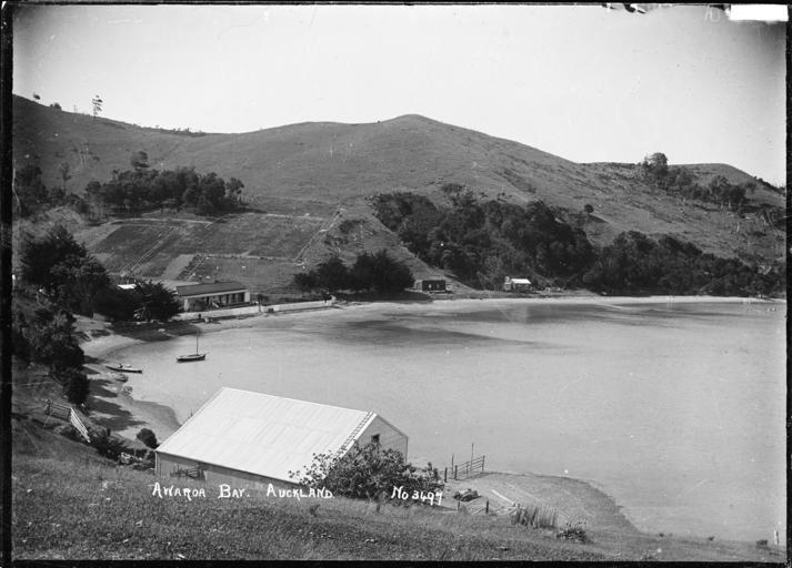 | Keywords: blackandwhite monochrome photo border outdoor serene black and white View of Pipitewai Bay. There is a large wooden dwelling close to the foreshore (possibly the Awaawaroa Guesthouse, and/or the Gordon family homestead) and two small beach cottages close by. People can be seen sitting on the verandah of the guesthouse, and also on the beach side of the white picket fence which separates the house from the beach. A large wooden building is in the foreground, possibly a woolshed. Photographed by William Archer Price in early 1900s. Inscriptions: Inscribed - Photographer's title on negative -bottom centre: Awaroa Bay. Auckland. No 3497 . Quantity: 1 b&w original negative(s). Physical Description: Dry plate glass negative 4.5 x 6.5 inches View of Pipitewai Bay in Awaawaroa Bay, Waiheke Island. Price, William Archer, 1866-1948 :Collection of post card negatives. Ref: 1/2-000949-G. Alexander Turnbull Library, Wellington, New Zealand. natlib.govt.nz/records/23216088 View of Pipitewai Bay. There is a large wooden dwelling close to the foreshore (possibly the Awaawaroa Guesthouse, and/or the Gordon family homestead) and two small beach cottages close by. People can be seen sitting on the verandah of the guesthouse, and also on the beach side of the white picket fence which separates the house from the beach. A large wooden building is in the foreground, possibly a woolshed. Photographed by William Archer Price in early 1900s. Inscriptions: Inscribed - Photographer's title on negative -bottom centre: Awaroa Bay. Auckland. No 3497 . Quantity: 1 b&w original negative(s). Physical Description: Dry plate glass negative 4.5 x 6.5 inches View of Pipitewai Bay in Awaawaroa Bay, Waiheke Island. Price, William Archer, 1866-1948 :Collection of post card negatives. Ref: 1/2-000949-G. Alexander Turnbull Library, Wellington, New Zealand. natlib.govt.nz/records/23216088 |