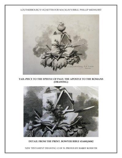 | Keywords: Vignette by Loutherbourg for the Macklin Bible 96 of 134. Bowyer Bible New Testament. Tailpiece to Romans.gif en Tail-piece to the epistle of Paul the apostle to the Romans vignette with flaming heart in a dish on a plinth with bible cross anchor sword and rope at foot on a patch of ground; letterpress in two columns above 1800 Inscriptions Lettered below image with production detail P J de Loutherbourg RA del et invt J Heath direx and publication line London Published by T Macklin Fleet Street July 1 1800 Print made by James Heath Dimensions height 475 millimetres; width 395 millimetres Photos by Harry Kossuth Phillip Medhurst 1800 07 01 PD-Art Epistle to the Romans Vignettes by Loutherbourg for the Macklin Bible Vignette Drawings by Loutherbourg in the Bowyer Bible Art depicting the New Testament by Philippe De Loutherbourg Anchors in art |
