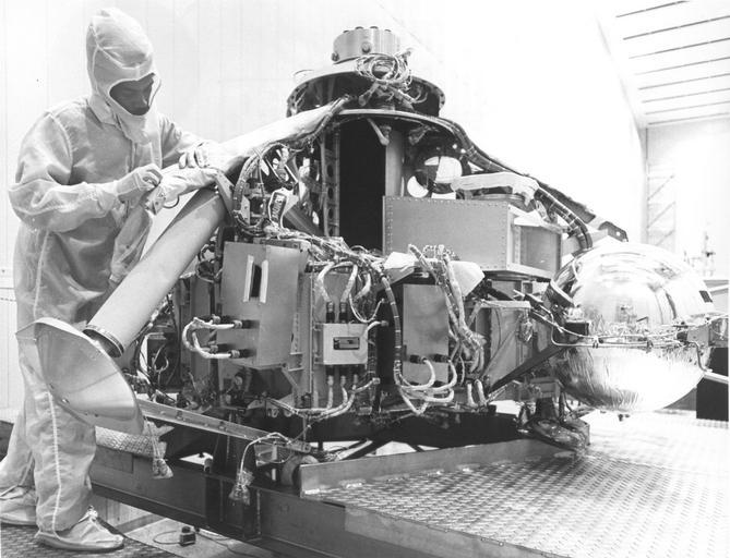 Keywords: nasa mars viking i vikingi 1974 viking lander vikinglander viking i lander vikingilander space exploration spaceexploration martin marietta martinmarietta blackandwhite monochrome black and white Description: (May 1, 1974) The planetary landing spacecraft Viking, which includes stereo cameras, a weather station, an automated stereo analysis laboratory and a biology instrument that can detect life, is under assembly at Martin Marietta Aerospace near Denver, Colorado. This Viking spacecraft will travel more than 460 million miles from Earth to a soft landing on Mars in 1976 to explore the surface and atmosphere of the red planet. Martin Marietta is prime and integration contractor for the Viking mission to NASA's Langley Research Center, Hampton, Virginia. The lander will be powered by two nuclear generators. Description: (May 1, 1974) The planetary landing spacecraft Viking, which includes stereo cameras, a weather station, an automated stereo analysis laboratory and a biology instrument that can detect life, is under assembly at Martin Marietta Aerospace near Denver, Colorado. This Viking spacecraft will travel more than 460 million miles from Earth to a soft landing on Mars in 1976 to explore the surface and atmosphere of the red planet. Martin Marietta is prime and integration contractor for the Viking mission to NASA's Langley Research Center, Hampton, Virginia. The lander will be powered by two nuclear generators. |