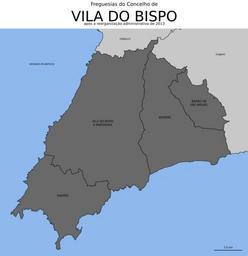 | Keywords: Vila do Bispo freguesias 2013.svg pt Freguesias do concelho de Vila do Bispo Portugal Fontes Diário da República Reorganização administrativa do território das freguesias Lei n º 11-A/2013 de 28 de janeiro Direcção-Geral do Território DGT Carta Administrativa Oficial de Portugal CAOP versão 2013 Continente http //www dgterritorio pt/ficheiros/cadastro/caop/caop_download/caop_2013_0/caop2013cont_zip_2 en Civil parishes in the municipality of Vila do Bispo Portugal Sources Diário da República Administrative reorganization of the civil parishes' territory Law n 11-A/2013 from 28th January Direcção-Geral do Território Official Administrative Chart of Portugal CAOP version 2013 Mainland http //www dgterritorio pt/ficheiros/cadastro/caop/caop_download/caop_2013_0/caop2013cont_zip_2 2015-01-12 own Gazilion other versions cc-zero Uploaded with UploadWizard Vila do Bispo SVG maps of freguesias in Portugal |