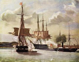 | Keywords: Vilhelm Pedersen - Scene af slaget ved Eckernførde - 1849.jpg Vilhelm Pedersen en Scene from the battle at Eckernførde Left to right The sail frigate Gefion the sail ship of the line Christian den Ottende and the paddle steamer Geiser trying to tow the Gefion to a better postition From there everything went wrong for the Danes 1849 oil canvas cm 28 36 5 Institution Frederiksborgmuseet place of discovery object history exhibition history credit line accession number place of creation Scanned from old book thumb left 80px Photo with frame Henrik Bramsen Danske Marinemalere 1962 page 113 PD-old-auto-1923 1859 Vilhelm Pedersen 1849 oil on canvas paintings Paintings in the Frederiksborg Museum 19th-century oil paintings of naval battles 1849 Naval battle at Eckernförde Scanned with Canon Pixma MP550 |