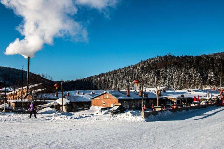 Keywords: village snow blue sky
