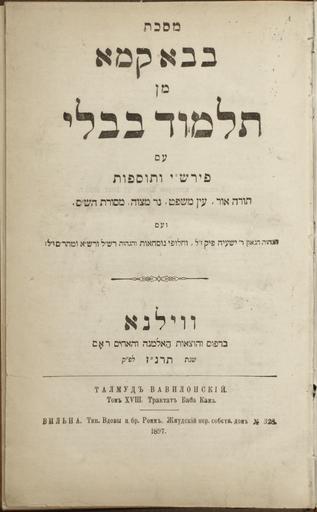 | Keywords: VilniusShasVol18Cover.JPG ru Виленский ШАС Титульный лист 18-го тома 2013-08-06 15 36 16 Babylonian Talmud Vilna Edition; Schneerson Library Moscow Edited by Widow Romm and Brothers of Vilna 1897; Photo made by user Makshes Из библиотеки Шнее сона г осква PD-Art-100 Vilna Edition Shas Uploaded with UploadWizard |