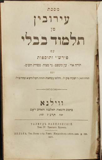 | Keywords: VilniusShasVol4Cover.jpg ru Виленский ШАС Титульный лист 4-го тома 2013-08-06 15 36 16 Babylonian Talmud Vilna Edition; Schneerson Library Moscow Edited by Widow Romm and Brothers of Vilna 1897; Photo made by user Makshes Из библиотеки Шнее сона г осква PD-Art-100 Vilna Edition Shas Uploaded with UploadWizard |