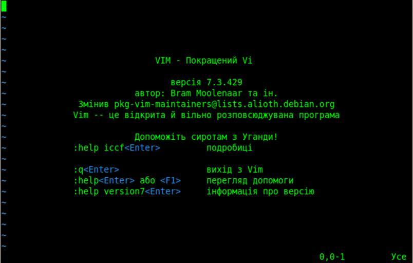 Keywords: Vim-splash-uk.png Vim text editor VIM 7 3 429 en text editor with a Ukrainian language Ukrainian en version of the user interface en splash screen en Vim VIM 7 3 429 uk з Ук аїнська мова ук аїнською uk ве сією Інте фейс ко истувача інте фейсу uk Screenshot of free software Знімок ек ану вільного п ог амного забезпечення Screenshot made by ReAl Знімок ек ану з облений ReAl 2013-09-13 Software depicted is distributed under the terms of w GNU General Public License GNU GPL en П ог амне забезпечення відбите на знімку ек ану поши юється на умовах w GNU General Public License GNU GPL uk free screenshot GPL Screenshots of Vim Screenshots of text editor software Screenshots of free software