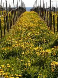 Keywords: vineyard winegrowing vine plantation post mountain meadow dandelion