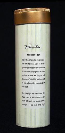 Keywords: Vinolia toilet poeder bus, foto2.JPG Very old packaging of a Dutch product that is not produced and/or sold any more own 2014-03-16 12 47 35 Alf van Beem CC-Zero Trademarked Talcum powder tins