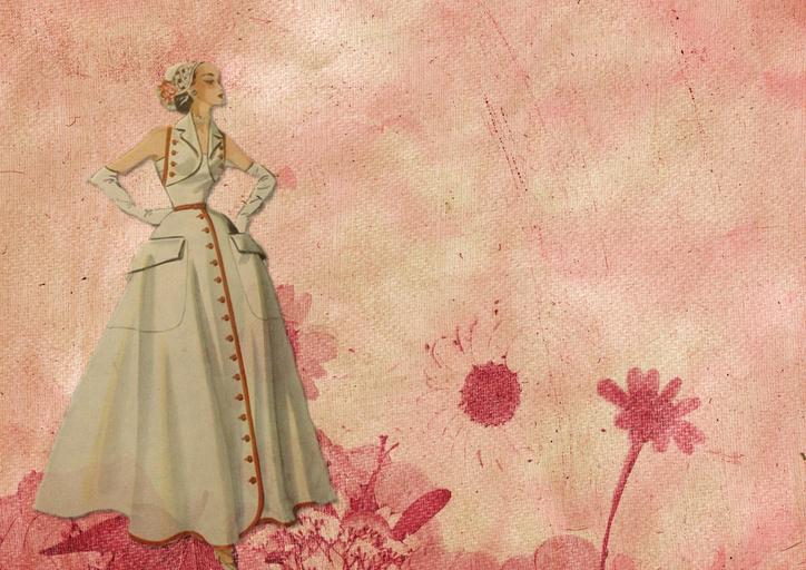 Keywords: vintage collage art woman beautiful fashion couture paris eiffel pink dress evening elegant fifties 1950s design decoupage digital collage art swirl french france europe artistic glamorous lovely memories scrapbook