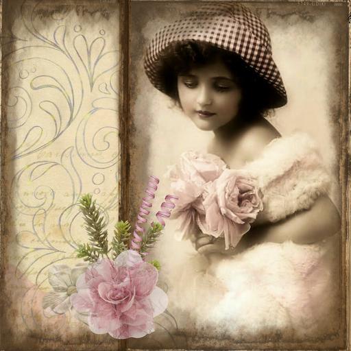 Keywords: vintage collage digital art flapper girl little floral decorative poster wallpaper romantic hat sweet cute young love european 20s