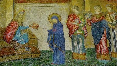 View Original:Virgin_Receiving_the_Purple_and_Cochineal_(Chora_monastery).jpg (600x341)