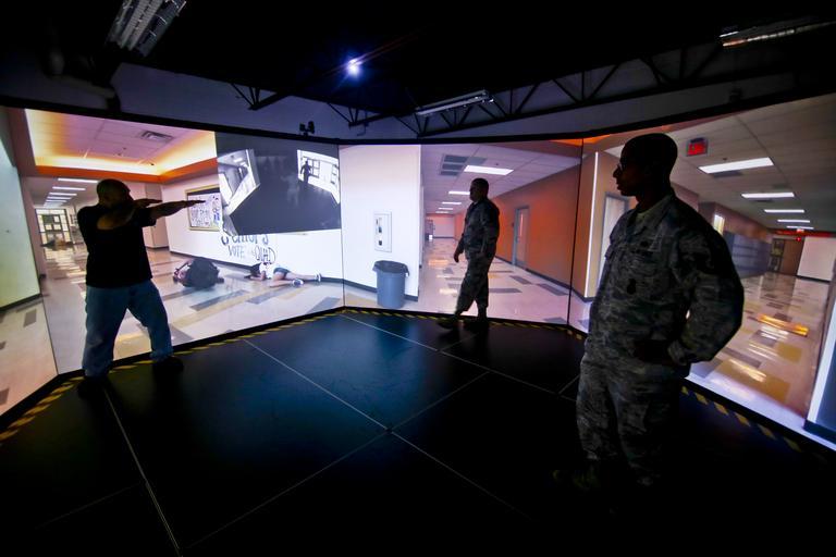| Keywords: usaf u.s. air force usairforce u.s. air national guard usairnationalguard air mobility command airmobilitycommand ang amc security forces securityforces sfs 108th wing 108thwing 108th security forces squadron 108thsecurityforcessquadron airman airmen training law enforcement lawenforcement virtra firearms simulator active shooter activeshooter virtual reality virtualreality air force airforce air national guard airnationalguard national guard nationalguard joint base mcguire-dix-lakehurst jointbasemcguiredixlakehurst joint base mdl jointbasemdl u.s. marshal usmarshal le lawrenceville nj usa A U.S Air Force Security Forces Airmen from the New Jersey Air National Guard's 108th Wing rget feedback from a U.S. Marshal instructor in a VirTra firearms training simulator at a U.S. Marshal training site in Lawrenceville, N.J. on Dec. 12. Security Forces Airmen from the 108th Wing got to participate in high-risk traffic stop and active shooter scenarios. "This is great hands on training," said Tech. Sgt. Heather Perez, from the 108th Security Forces training office. "The Airmen get to see how they react to these various events individually, as well as with a partner. The technology is amazing." (U.S. Air National Guard photo by Tech. Sgt. Matt Hecht/Released) A U.S Air Force Security Forces Airmen from the New Jersey Air National Guard's 108th Wing rget feedback from a U.S. Marshal instructor in a VirTra firearms training simulator at a U.S. Marshal training site in Lawrenceville, N.J. on Dec. 12. Security Forces Airmen from the 108th Wing got to participate in high-risk traffic stop and active shooter scenarios. "This is great hands on training," said Tech. Sgt. Heather Perez, from the 108th Security Forces training office. "The Airmen get to see how they react to these various events individually, as well as with a partner. The technology is amazing." (U.S. Air National Guard photo by Tech. Sgt. Matt Hecht/Released) |