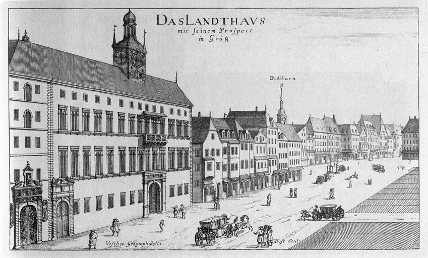 Keywords: Vischer - Topographia Ducatus Stiria - 119 Graz Landhaus.jpg G M Vischers Käyserlichen Geographi Topographia Ducatus Stiriae Das ist Eigentliche Delineation / und Abbildung aller Städte / Schlösser / Marcktfleck / Lustgärten / Probsteyen / Stiffter / Clöster und Kirchen / so es sich im Herzogthumb Steyrmarck befinden; Und anjetzo Umb einen billichen Preyß zu finden seynd Bey Johann Bitsch Universitäts Buchhandlern / Auff dem Juden Platz bey der guldenen Saulen Graz 1681 Die Nummerierung der Dateien folgt der alphabetischen Reihung der Ortsnamen 56671 Topographia Ducatus Stiriae 1681 Creator Georg Matthäus Vischer Scan and postprocessing by Hubertl AT Topographia Ducatus Stiriae Engravings of Graz Landhaus Graz Graz in the 17th century Files by User Hubertl |
