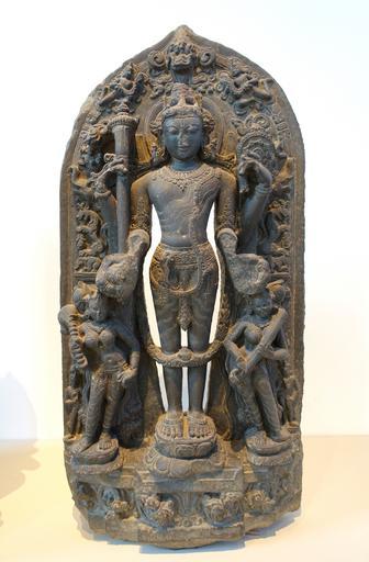 | Keywords: Vishnu surrounded by Lakshmi and Sarasvati, Eastern India, 11th-12th century AD, basalt - Östasiatiska museet, Stockholm - DSC09357.JPG en Exhibit in the Östasiatiska museet Stockholm Sweden This artwork is old enough so that it is in the public domain Photography was permitted in the museum without restriction 2014-09-13 06 03 56 own Daderot other versions cc-zero Uploaded with UploadWizard Sculptures from India in Östasiatiska museet | ||||