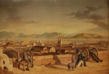 Keywords: Vista de la ciudad de Santiago.jpg es Vista de la Ciudad de Santiago tomada desde el Castillo de Hidalgo en el Cerro Santa Lucía http //www surdoc cl/detalleObjeto php id 139759 Información completa http //www museovicunamackenna cl/647/w3-article-25661 html Carlos Wood 1831 PD-Art Paintings by Charles C Wood Taylor Santiago de Chile in art |