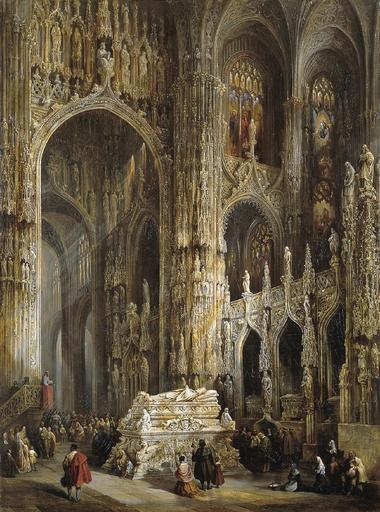 | Keywords: Vista del interior de una catedral, de Genaro Pérez Villaamil (Real Academia de Bellas Artes de San Fernando).JPG El lienzo en el que puede verse un gran sepulcro con estatua yacente muestra el interior de una catedral Siglo XIX oil canvas Size cm 108 146 Institution Real Academia de Bellas Artes de San Fernando http //ceres mcu es/pages/Mainhttp //www realacademiabellasartessanfernando com/assets/docs/guia_museo/guia_museo pdf object history exhibition history credit line «DOM Genaro Pérez Villaamil» accession number 1415 http //ceres mcu es/pages/Main PD-old-100 Paintings by Jenaro Pérez Villaamil in the Royal Academy of Fine Arts of San Fernando 19th-century paintings in the Royal Academy of Fine Arts of San Fernando Uploaded with UploadWizard |