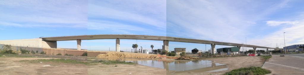 Keywords: Vistapanoramicapuentepepa.jpg es Vista panorámica del tablero metálico en construcción del Enlace del Río San Pedro own NACLE2 Cc-zero Construction of La Pepa bridge Blue sky in Andalusia