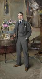 Keywords: Vittorio Matteo Corcos Herrenportrait 1890.jpg artwork Ganzfiguriges Herrenportrait bezeichnet 1890 Oil on canvas cm 90 47 unknown http //www dorotheum com Dorotheum signiert datiert Al carissimo amico Formilli V Corcos Maggio 18 90 other versions PD-old-70-1923 DEFAULTSORT 1890; unknown man Images from Dorotheum Vittorio Matteo Corcos 19th-century portrait paintings location missing 19th-century portrait paintings of unidentified men 1890 oil on canvas paintings 1890 portrait paintings Male 19th-century men looking at viewer in art 19th-century oil portraits of standing men at full length 19th-century portrait paintings in interiors Grey clothing in art male Lounge suits in art Men in rooms in art Portraits with paintings Tables in portrait paintings