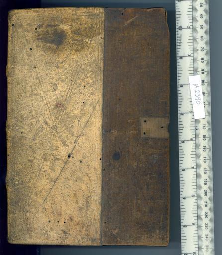 | Keywords: Vocabularius praedicantium, sive Variloquus. -- - Upper cover (IA2390).jpg Style Diaper; Caption Upper cover; Colour White / cream; Edge Unspecified exhibition history Decorative Technique Tooled in blind; Cover Material Pigskin quarter Wooden boards Traces of 1 pair of clasps BMC I 163 No ms notes in book but ink ms parchment used as upper fly leaf Einbanddatenbank workshop number W002276 tools S015312 S015686 object history Text 1500 ; Unspecified; Unspecified object type Cc-zero place of creation Binding Germany place of discovery BMC I 163 British Library image http //www bl uk/catalogues/bookbindings/LargeImage aspx RecordId 020-000012308 ImageId ImageId 45759 Copyright BL Vocabularius praedicantium sive Variloquus Uploaded with GWToolset Vocabularius praedicantium sive Variloquus - Upper cover IA2390 http //www webarchive org uk/bldatasets/bindings/13285_3 jpg Bookbinding 15th-century bookbinding |
