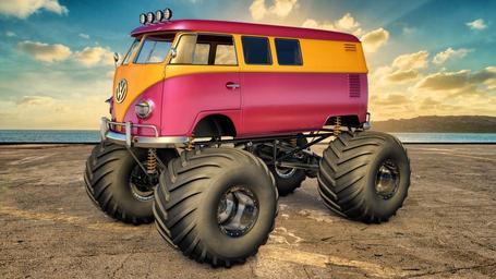 Keywords: volkswagen vw 1950 camper bus monster truck 3d rendering