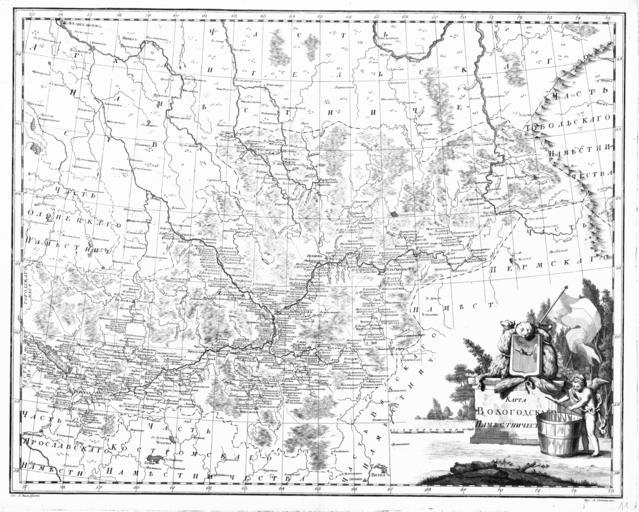 Keywords: Volog 1792.jpg Ка та Вологодского наместничества лист 11 из «Российского атласа из со ока четы ех ка т состоящего и на со ок на два наместничества Импе ию азделяющего» 1792 en Map of Vologda Namestnichestvo sheet 11 from official Atlas of the Russian Empire 1792 Российский атлас из со ока четы ех ка т состоящий и на со ок два наместничества импе ию азделяющий / Сочин г ави и печатан п и Го ном училище в 1792 г Соч А Вильдб ехт Г ави А Савинков И Леонов Вы ез Т ихайлов http //rutracker org/forum/viewtopic php t 446903 1792 Александ ихайлович Вильб ехт en Aleksandr Mikhaylovich Vilbrekht PD-old-100 Atlas of Russian Empire 1792 year Maps uploaded by Andrew Butko from various sources