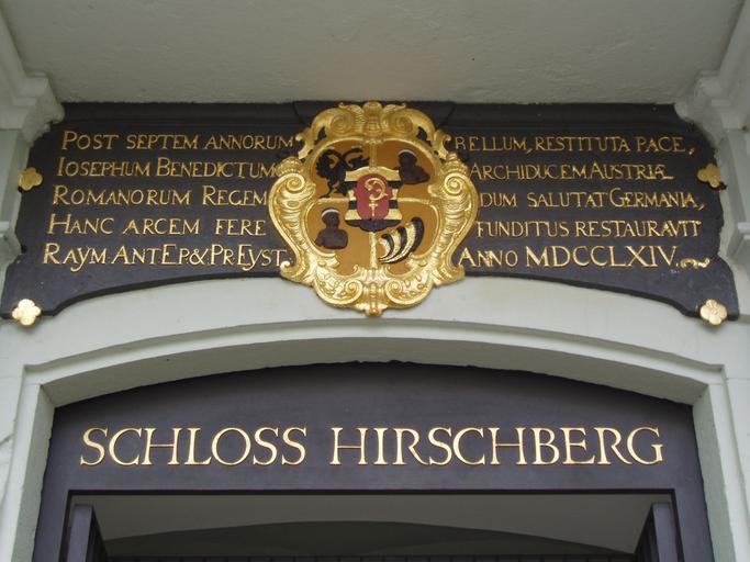 | Keywords: Von Strasoldo Wappen Schloss Hirschberg.jpg Bauinschrift und Wappen des Eichstätter Fürstbischofs Raymund Anton von Strasoldo in Schloss Hirschberg 1764 self-photographed original text selbst fotografiert 1 2007-10 KBWEi wikipedia de KBWEi Original upload log de wikipedia Brackenheim CommonsHelper de wikipedia Von_Strasoldo_Wappen_Schloss_Hirschberg jpg 2007-11-07 13 59 KBWEi 2560×1920× 1155297 bytes <nowiki> Andere Versionen Anmerku</nowiki> ImageNote 1 883 346 771 752 2560 1920 2 thumb left ImageNoteEnd 1 Schloss Hirschberg Building inscriptions in Germany Raymund Anton von Strasoldo Coats of arms of bishops of the Roman Catholic Diocese of Eichstätt Derivatives of the Coat of arms of Eichstätt diocese Reliefs of coats of arms in Landkreis Eichstätt |