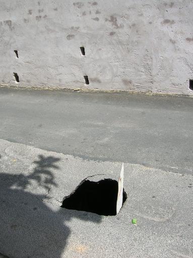 Keywords: Voragine 2.JPG Voragine in via del Pigneto Roma Own 2009-05-17 Patafisik Dominio Pubblico Pothole in Via del Pigneto Rome