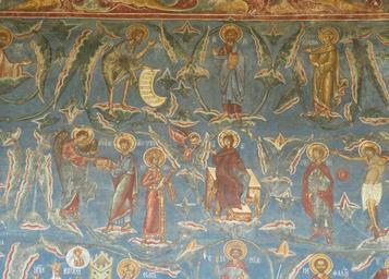 Keywords: Voronet murals 2010 08.jpg Voroneţ Monastery Romania The church is one of the Painted churches of northern Moldavia listed in UNESCO's list of World Heritage sites own photo 14 d'Août 2010 Man vyi Own work all rights released Public domain Murals in Voroneț Murals and icons on the exterior of churches |
