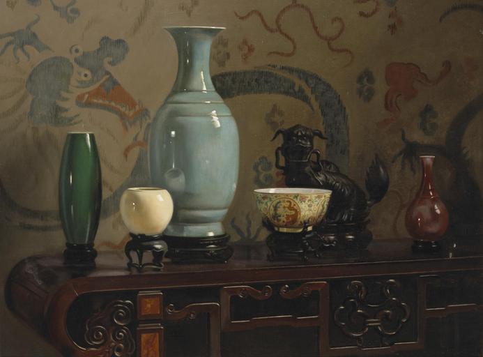 Keywords: Vos - Asian still life with blue vase, 1915.jpg en Asian Still Life with Blue Vase http //www bonhams com/auctions/17534/lot/80/ Bonhams Butterfields New York Creator Hubert Vos 1915 oil canvas in 30 40 object history credit line signed and dated 'Hubert Vos 1915' lower left accession number PD-old-auto-1923 1935 Vases in still-life paintings 1915 paintings Hubert Vos Images from Bonhams 1910s still-life paintings |