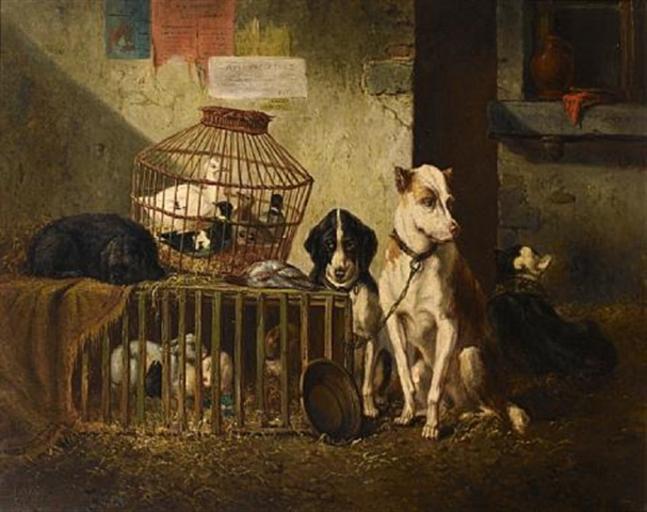 Keywords: Vos-At the market.jpeg At the market Au marché oil on canvas Joos Vincent de Vos artist Creator Joos Vincent de Vos 1860's PD-Art Joos Vincent de Vos Dogs in art Paintings of ducks