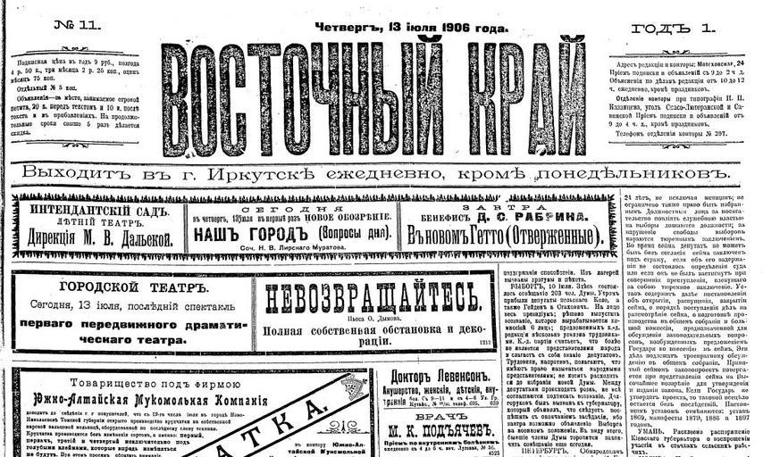 | Keywords: Vosochniy kray.jpg  ru Газета Восточный к ай Издавалась в И кутске И кутская го одская библиотека Редакция газеты Восточный к ай 1906-07-13 PD-old Newspapers of Russia 1906 13 July Media of Irkutsk History of Irkutsk Newspapers of Russia to be categorised by name |