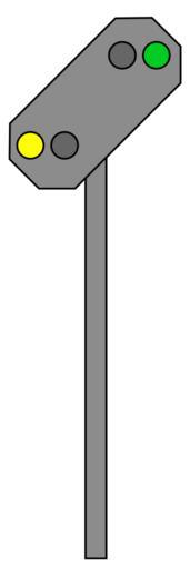 | Keywords: Vr2 Licht.svg Deutsches Licht-Vorsignal Vr2 Langsamfahrt erwarten Selbstgezeichnet nach der Beschreibung der Eisenbahn-Signalordnung Die Lichtvorsignale zeigen zwei nach rechts steigende Lichter Ein gelbes Licht und nach rechts steigend ein grĂ¼nes Licht given in the Eisenbahn-Signalordnung 2006-02-04 own assumed Qualle Diagrams of railway signals in Germany |