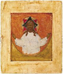 | Keywords: Vresok - God Saboath (Moscow, 17c, priv.coll).jpg  en MacDougall's Fine Art Auctions The Lord of Sabaoth is depicted dwelling in Heaven surrounded by fiery rays of golden light signifying the act of the Divine creation He is shown with the Sophia type of halo an eight-pointed star formed by the superimposition of a green square upon a red square which symbolises Divine wisdom Both hands are raised in blessing and are turned towards humankind emphasising the creative and the world-ordering will of the Holy One The iconography is based on the image of Jesus Christ as the Ancient of Days thereby symbolically depicting God the Father Daniel 7 9 and 14 a concept already present in Byzantine art However from the 16th century the details defining the figure as Christ such as the IC XC monogram and the tripartite halo disappear and the inscription The Lord of Sabaoth is introduced Such iconography became widespread from the middle of the 16th century particularly in the art of Moscow A depiction of the Lord of Sabaoth usually crowned compositions representing the Creation Annunciation Theophany Synaxis of the Virgin Triumph of the Cross and many other scenes especially symbolic ones The image was widespread in Old Believers' circles where this ancient fragment has been conserved by carefully inserting it into a new 18th-century panel century 17 http //macdougallauction com/Indexx1210 asp id 17029 lx a 17 other versions PD-old-70-1923 MacDougall's Fine Art Auctions Files uploaded by Shakko from various sources Uploaded with UploadWizard Icons of God the Father Icons of Moscow |
