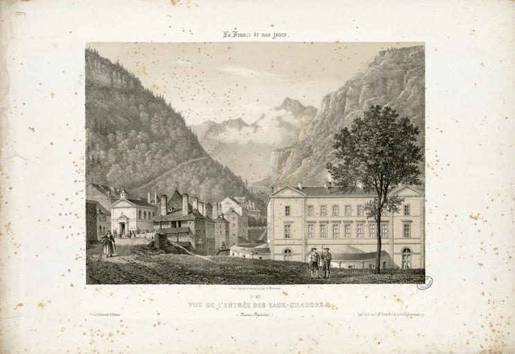 Keywords: Vue de l'entrée des Eaux-Chaudes (Basses-Pyrénées) - Fonds Ancely - B315556101 A MERCEREAU 7 095.jpg Impression en 3 coul par Frick frères à Paris Fait partie d'un ensemble de recueils de lithographies de Mercereau composés de lithographies provenant de La France de nos jours vaste suite publiée par livraisons de 1853 à 1876 et comprenant 475 planches en deux tirages l'un à deux teintes noir et bistre l'autre en couleurs Les libraires ont réuni ces planches en albums de composition variable quant au nombre de planches et aux dessinateurs Asselineau Mercereau Maurice Deroy etc Un titre Les Pyrénées par Ch Mercereau; Bagnères-de-Luchon par Ch Mercereau était frappé sur le plat supérieur de la reliure de l'album ainsi que le nom du Libraire pour lequel il était réalisé La plupart des recueils de ces planches pyrénéennes portent le nom de Sajous libraire à Bagnères-de-Luchon Pl 1 à 18 numérotées de 370 à 386 Pl 374 pl 5 et 6 en double -- Pl 19 20 et 21 numérotées respectivement 407 415 et 418 Ces trois pl ont été dessinées et lithographiées par Asselineau -- Pl 22 23 et 24 numérotées 438 439 et 440 -- Pl 22 lith par Aubrun -- Pl 25 numérotée 441 -- Pl 26 à 40 numérotées de 327 à 341 -- Pl 41 à 46 numérotées de 363 à 368 -- Pl 47 numérotée 369 -- Pl 48 num 292 -- Pl 49 et 50 num 264 et 265 -- Pl 51 et 52 num 268 et 269 -- Pl 53 à 55 num de 293 à 295 -- Pl 56 num 300 -- Pl 57 à 59 num de 307 à 309 -- Pl 60 à 70 num de 316 à 326 -- Pl 71 num 63 dessin et lith d'Asselineau imprimerie Destouches -- Pl 72 et 73 num 87 et 88 dessin et lith d'Asselineau imprimerie Destouches -- Pl 74 num 124 signée Lebreton éditée chez Lalonde à Paris et imprimée chez Becquet frères à Paris -- Pl 75 num 161 dessin et litho d'Asselineau imprimerie Destouches --Pl 76 à 78 num de 207 à 209 -- Pl 79 à 81 num de 211 à 213 -- Pl 82 num 220 dessin et lith de Maurice imprimerie Destouches -- Pl 83 à 86 num de 226 à 229 -- Pl 87 et 88 num 234 et 235 -- Pl 89 à 91 num de 273 à 275 -- Pl 92 et 93 num 290 et 291 Pièces jointes 6 pl sépia dont certaines sont des doubles du recueil de Mercereau Les cinq premières planches sont numérotées respectivement 318 321 324 331 386 La dernière planche n'est pas extraite de La France de nos jours mais de L'Espagne pittoresque et monumentale Ces six planches sont signées Mercereau éditées chez Sinnet et imprimées chez Frick frères Ancely René 1876 - 1966 Possesseur fre public domain domaine public B315556101_A_MERCEREAU_7_095 jpg image/jpeg 1 f de pl lithogr ; 31cm oblong Sinnet F Éditeur Frick frères Imprimeur http //numerique bibliotheque toulouse fr/collect/general/index/assoc//ark /74899/B315556101_A_MERCEREAU_7_095 dir/B315556101_A_MERCEREAU_7_095 jpg Bibliothèque municipale de Toulouse A-MERCEREAU 7-95 Creator Charles Mercereau http //catalogues toulouse fr/web2/tramp2 exe/do_keyword_search/log_in setting_key BMT1 servers 1home query p001719 St Jean-de-Luz intérieur de l'Eglise St Jean-de-Luz le Château de l'Infante Biarritz Vue générale prise du Phare Château de Mauvesin près Bagnères-de-Bigorre Hautes Pyrénées Bagnères de Bigorre Hautes Pyrénées - Intérieur de l'Eglise des Carmes en couleurs Bagnères de Bigorre Hautes Pyrénées - Intérieur de l'Eglise des Carmes Bagnères-de-Bigorre - Eglise et couvent des Carmes Bagnères-de-Bigorre Hautes-Pyrénées - Tour des Jacobins Cascade et Pont de Magenta Vallée de l'Esponne Hautes Pyrénées Cascade de Trémes-Aïgues Vallée de Grip Hautes Pyrénées St Sauveur Hautes Pyrénées - Le Pont Napoléon Bayonne - Eglise St André Arreau et la Vallée d'Aure Hautes Pyrénées - Vue prise au dessus de la route du Col d'Aspin Auch - Vue prise sur les bords du Gers Auch - Vue de la Cathédrale Auch - Intérieur de la Cathédrale Bagnères-de-Bigorre - Vue Générale prise de la Fontaine ferrugineuse Eaux-Bonnes Basses-Pyrénées - L'établissement Thermal et la Chapelle Nantes - Vue de l'Eglise Ste Croix Le Croisic - Plage des Baigneurs et Etablissement de Bains Le Folgoët - Vue de l'Eglise Brèche de Roland prise de Gèdres Hautes Pyrénées Eglise des Templiers à Luz Chapelle du couvent de Pouëlahun i e Pouey Lahun - Vallée d'Azun Hautes Pyrénées Le Pont de Scia - Route de Luz à Gavarnie Hautes-Pyrénées Vue de l'établissement de la Raillière près Cauterets Hautes-Pyrénées Vue générale de Cauterets prise du Mamelon Vert Hautes-Pyrénées Vue du Fort de Lourdes Hautes-Pyrénées Vue d'Argelès-de-Bigorre Hautes-Pyrénées Vue de St Sauveur Hautes-Pyrénées Le Pas de l'Echelle Route de Gavarnie Hautes-Pyrénées Fond de la Vallée d'Argelès prise de la terrasse de St Savin Hautes-Pyrénées Place Grammont à Pau Basses-Pyrénées Vue générale des Eaux-Bonnes Basses-Pyrénées Barèges et la Vallée du Bastan Hautes-Pyrénées Chute supérieure du Pont d'Espagne Hautes-Pyrénées La grotte miraculeuse à Lourdes Hautes-Pyrénées Eglise de Bétharram et Pont de Lestelle Basses Pyrénées Cascade du Cerizet Près Cauterets Hautes-Pyrénées Pic du Midi d'Ossau 2885m Basses Pyrénées - Vue prise du 3e plateau de Bious-Artigues Toulouse - Cloître du Musée et Clocher des Augustins Pau - Vue prise de la terrasse du Château Pau - Vue du Château prise du Parc Toulouse - Cloître du Musée Galerie du Moyen-Age Toulouse - La maison de pierre fragment de la façade Toulouse - Intérieur de St Sernin St Jean-de-Luz Fort du Socoa Toulouse - Vue du Capitole Bordeaux Vue de la Porte du Caillau i e Cailhau Bordeaux Porte de la grosse Cloche Bordeaux Vue des Quinconces Bordeaux - Vue de la Tour et de l'Eglise de St Michel Toulouse - Vue du Pont de pierre prise du Quai de Brienne Toulouse - Abside de l'Eglise de St Sernin de l'an 1097 Toulouse - Choeur de la Cathédrale St Etienne Rouen - Hôtel de Bourgtheroulde Biarritz - Vue des Bains Napoléon et du Casino Biarritz - Vue des Bains du Port Vieux Biarritz - Vue de l'Entrée de la Vi