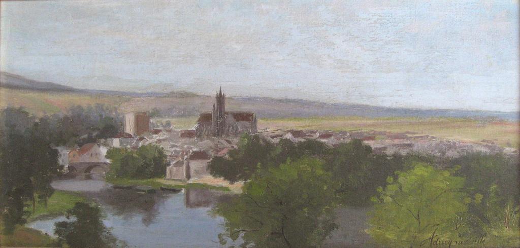 | Keywords: Vue de Moret-sur-Loing (Adrien Lavieille).JPG Oil-painting on canvas 17 7 x 37 4 cm by Adrien Lavieille 1848-1920 a french landscape painter representing Moret-sur-Loing a small town near Fontainebleau in south-east of Paris Private collection unknown creator Adrien Lavieille DEFAULTSORT Lavieille Adrien Landscape paintings Adrien Lavieille PD-old Moret-sur-Loing in art Loing | ||||