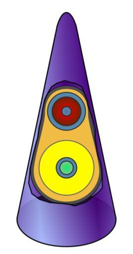 | Keywords: W-87 warhead diagram.svg Teller-Ulam design On the top is a spherical secondary while at the bottom is a spherical primary The outer casing blue/purple is that of a MIRV warhead reentry vehicle very schematic which would protect the warhead from the heat of the atmosphere after its launch into space The physics package of the primary and secondary is surrounded by a uranium-238 reflector casing gray inside of which is filled with polystyrene foam tan which aids in the transfer of radiation from the primary to compress the secondary The primary bottom is a tamper of some sort gray followed by precisely arranged high explosives yellow followed by a plutonium core blue filled with tritium gas green The spherical secondary is a uranium-235 or uranium-238 tamper blue followed by lithium deuteride fusion fuel red followed by a uranium-235 or plutonium sparkplug blue This is not drawn with any precision or scale and are meant only to illustrate a general concept Based primarily on http //www fas org/sgp/eprint/morlan2 gif published in U S News and World Report in 1995 and reprinted in the 1999 Cox Report More images available online at Howard Morland's http //www fas org/sgp/eprint/morland html The Holocaust Bomb A Question of Time own Fastfission HowardMorland File W-87 warhead diagram png Teller-Ulam design Cross sections of nuclear weapons |