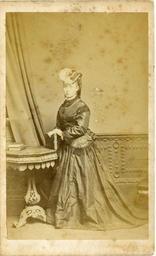 Keywords: W H Gill Devonport 002.jpg 1860-1900 carte de visite photo of young woman in silk dress by W H Gill of 88 James Street Devonport England ;Points of interest The woman has a purse or bag fixed to her waist The tip-up Indian table is of a type manufactured and exported in the 1880s-1890s The tip-up mechanism did not work properly due to the fixed fringe on the table-top so that the top could not rest vertically They were very heavy and often made of padouk wood There is a large version painted white in the St Petersburg palace in the conservatory Scan photo in my possession 1860-1900 WH Gill out of copyright The reverse of this carte de visite is here File W H Gill Devonport 002a jpg PD-Old W H Gill of Devonport Portrait photographs of unidentified women 1860c 19th-century portrait photographs of standing women at full length 1860c Cartes de visite Tables in portrait photographs 1860c